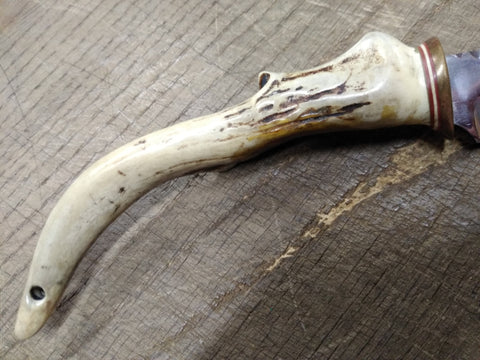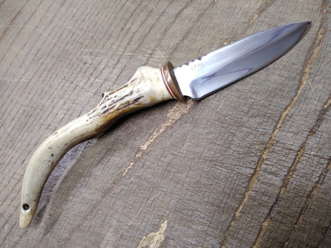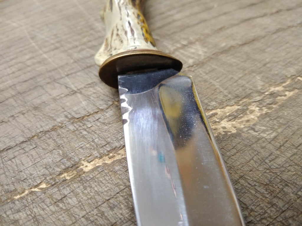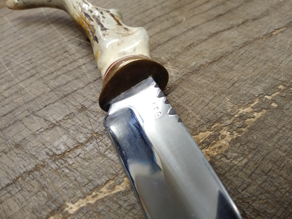 ***PLEASE LOOK AT ALL THE PICTURES AND ASK QUESTIONS BEFORE BIDDING*** This is a Vintage GPG Fixed 4 inch Blade Custom Made Hunting Knife Antler Handle 9.25 inch Total Length! *** The pictures are a substantial part of the description so please examine all the photos and contact me if you have any questions. We will be happy to save you shipping costs by picking this up at our shop. Thank You 100725-02-RK