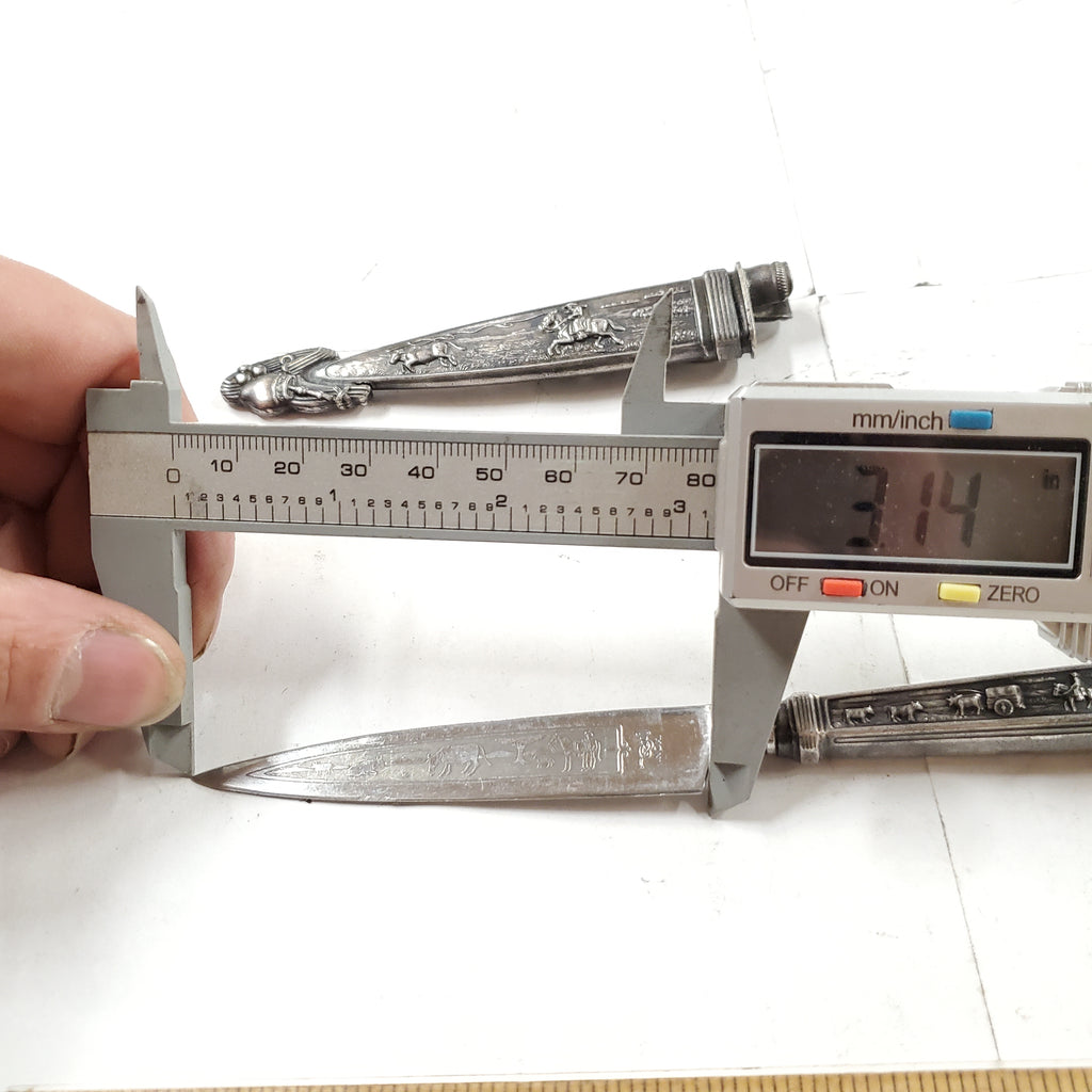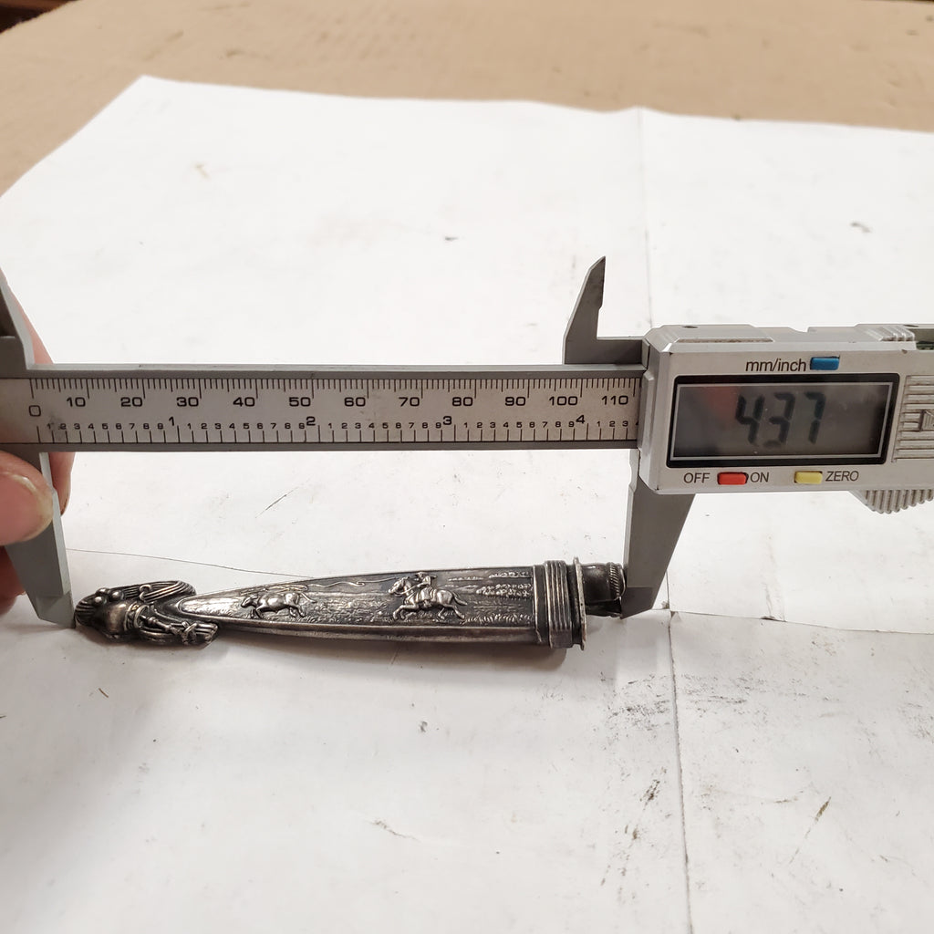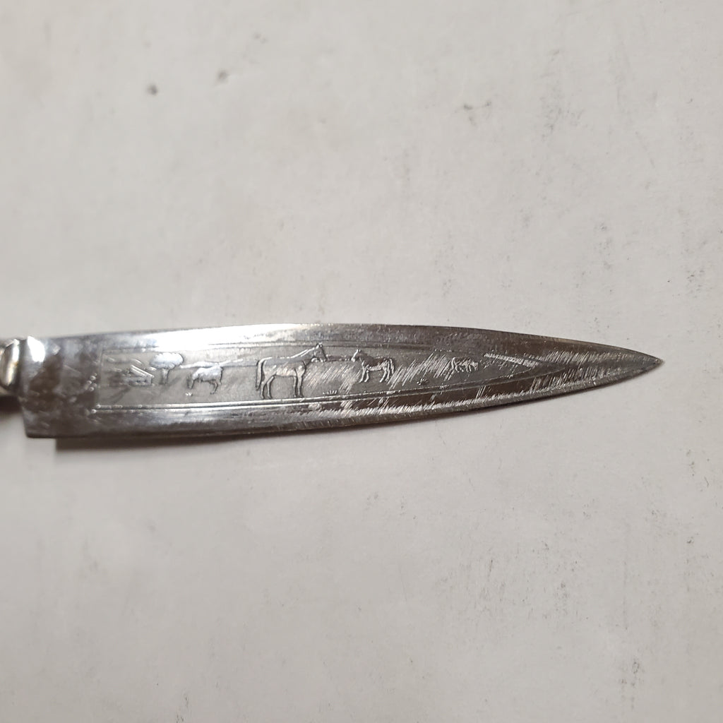 ***PLEASE LOOK AT ALL THE PICTURES AND ASK QUESTIONS BEFORE BIDDING*** This is a Vintage Inox Argentina Gaucho Hunting Knife Dagger w/Sheath Horse Etchings 3.14" Blade! Great Shape! Just got this and other similar knives in, haven't ever seen anything like them before. I was told they were Gaucho hunting knives from Argentina, pretty interesting knives!***Selling as pictured. The pictures are a substantial part of the description so please examine all the photos and contact me if you have any questions. We will be happy to save you shipping costs by picking this up at our shop. Thanks for looking. 031224- RK-03
