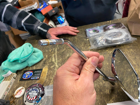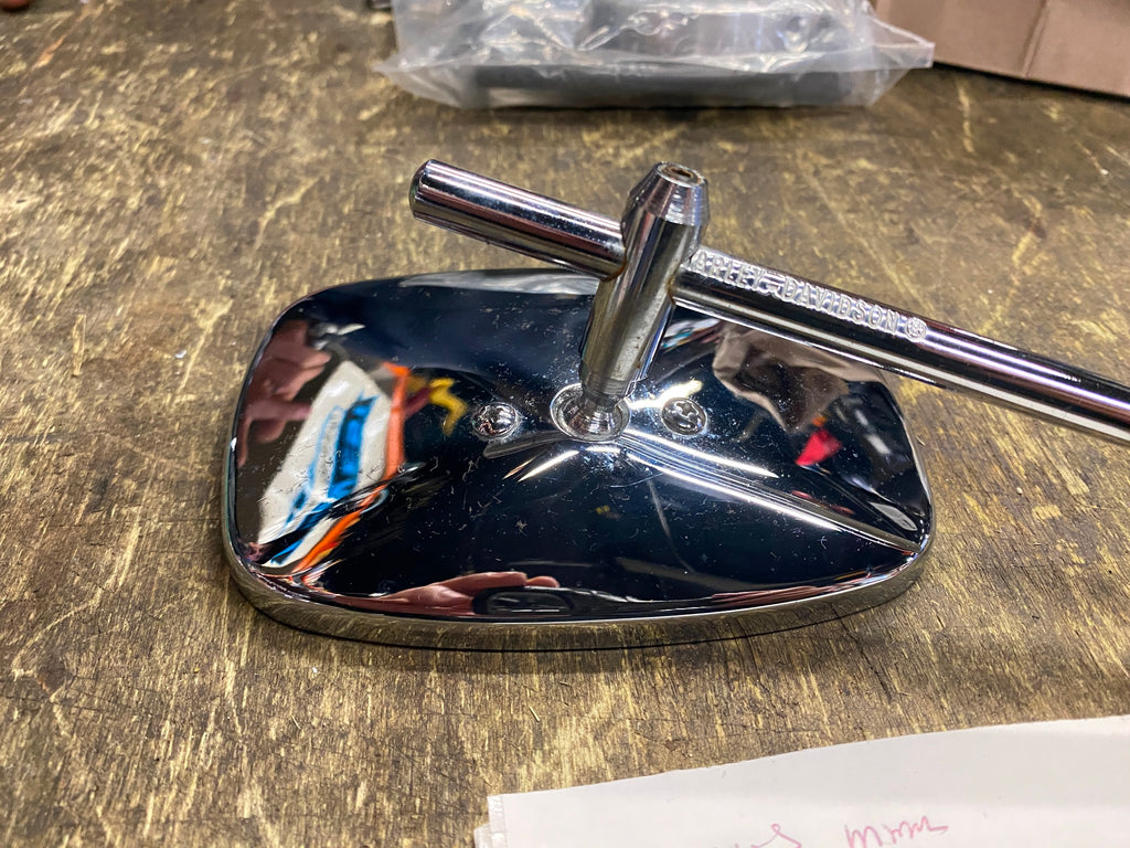 NOS OEM Mirror Shovelhead Ironhead FX FLH Long Stem Harley logo Glide Sturgis new old stock really hard to find sorry only have one... harley part # 91875-70B