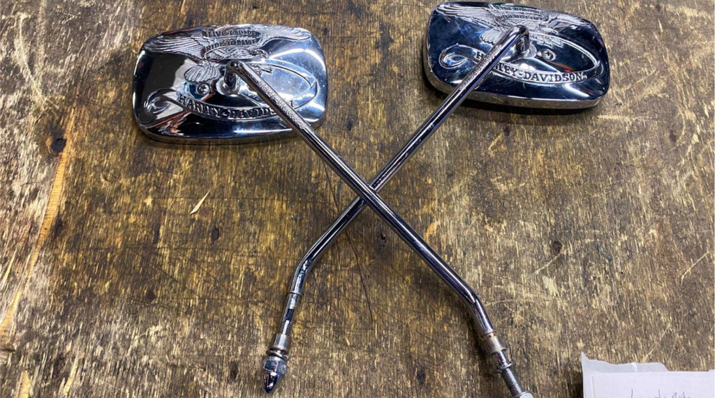 Pair OEM Harley Ride to Live Mirrors Long Stem Touring Softail FXR Sportster Dyn