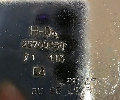 The Harley-Davidson part number 25700389 is for an OEM chrome derby cover used on various Touring and Trike models with the Milwaukee-Eight (M8) engine.