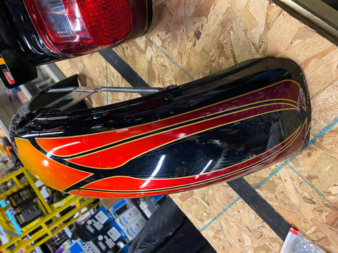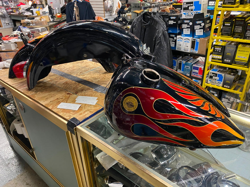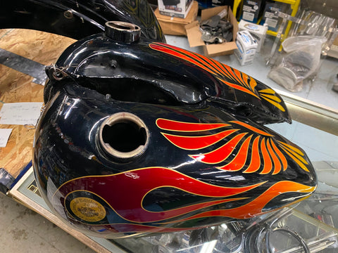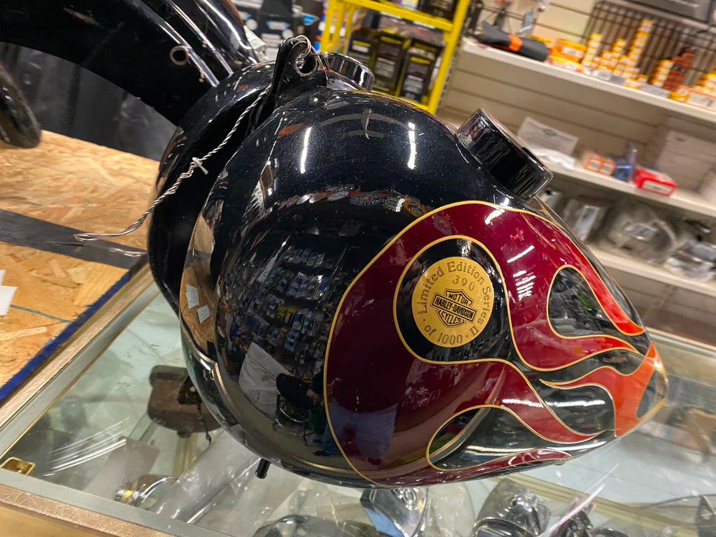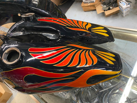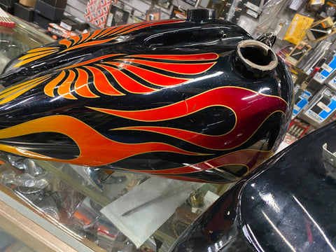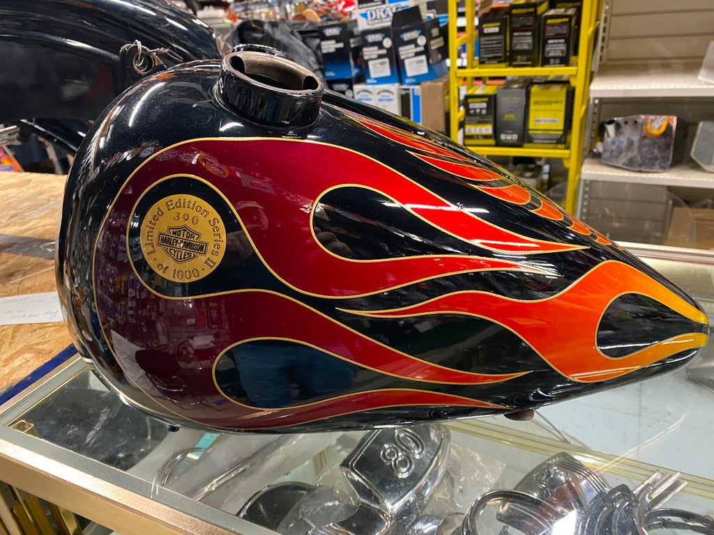 - Limited Edition Paint Set Harley Shovelhead FX 1973-84 OEM Factory Flames Low rider only ever remember seeing one bike with this paint on it pretty sure it was a 1979 low rider albert from alberts chrome had it on tracys bike.... Loved that paint job! not sure what ever happened to that bike. found this decades ago had it hanging on the wall...... buddy of mine was bugging me for the tanks to put on a custom couldnt break up the set that would just be a shame........ some wear & tear but still a great looking set!!! tanks are clean inside 1st custom paint series I know that harley did!!!!