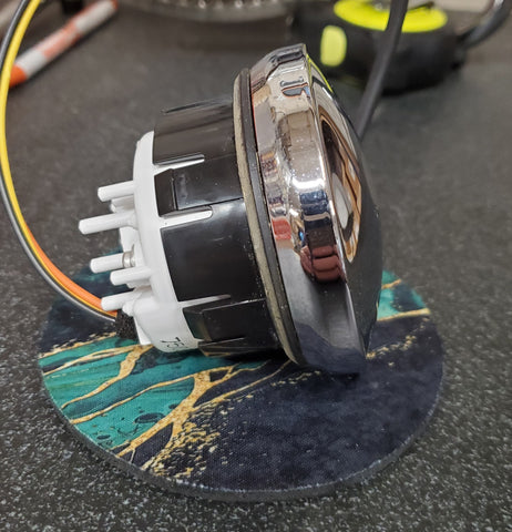 - Fuel cap mounting: The gauge is mounted directly into the fuel cap on the motorcycle's gas tank, combining the fuel cap and fuel gauge into a single unit.
