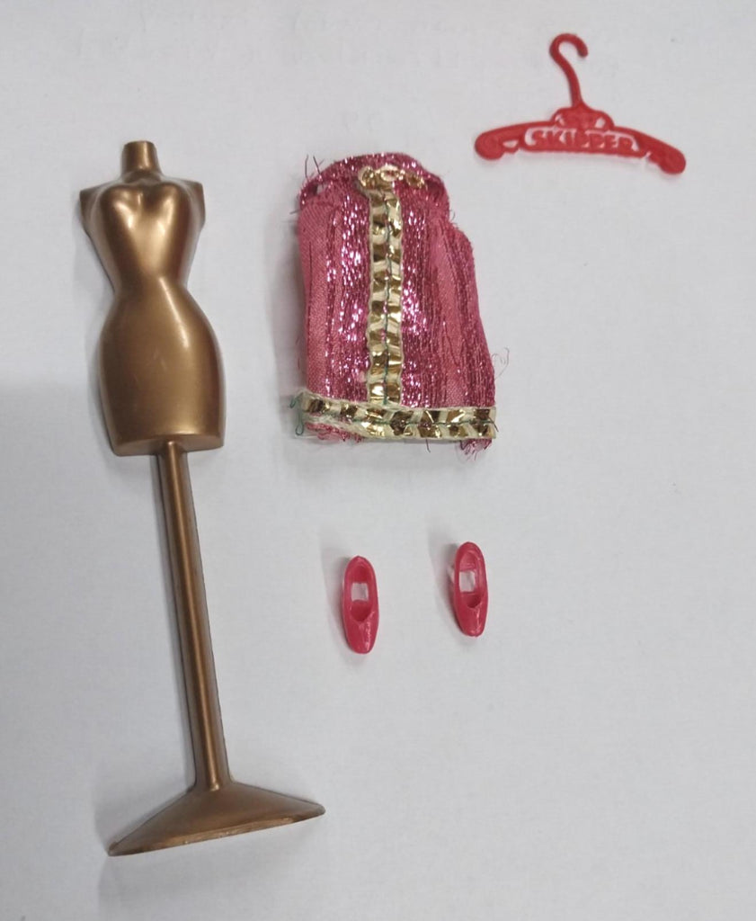 Barbie Doll Display Stand Pink Halter Dress Shoes Hanger Clothes High Heels