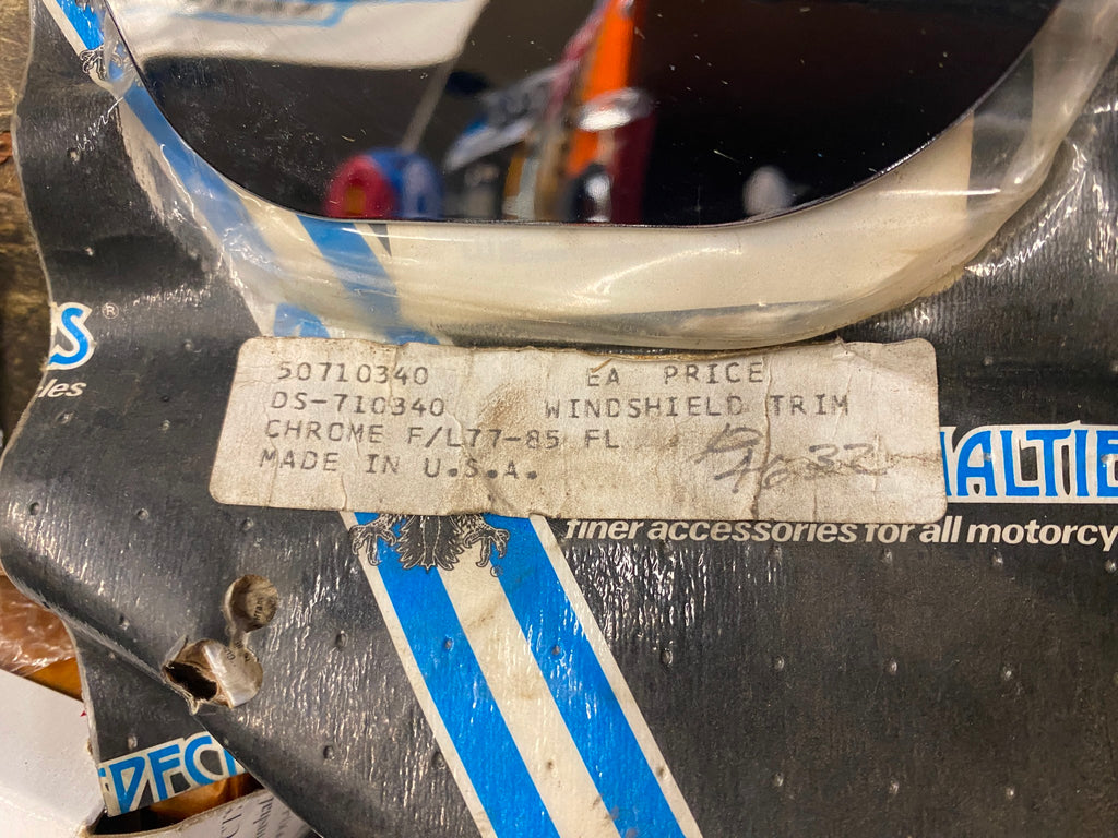 Chrome Windshield Trim Harey Touring FLH 1977-85 Shovelhead  evo  Touring Glide Acc USA   old accessory trim from drag specialties    sizes in pics   opened for pics    few smalls from sitting.