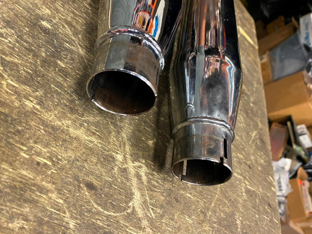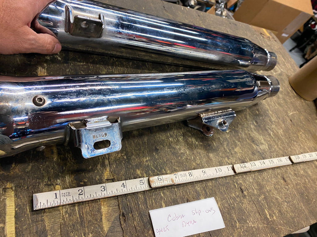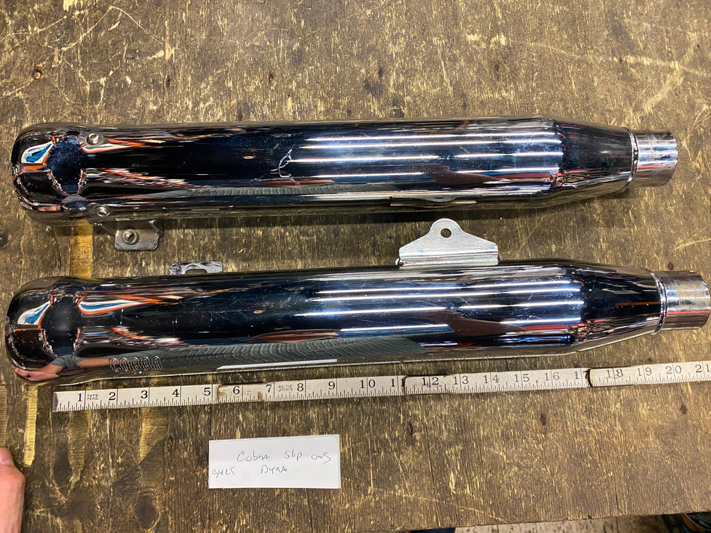 Cobra 3" Neighbor Hater Slip-On Mufflers Chrome #6045 Harley Davidson Dyna little wear & tear took off a 2011 dyna wide glide believe the part # is 6045