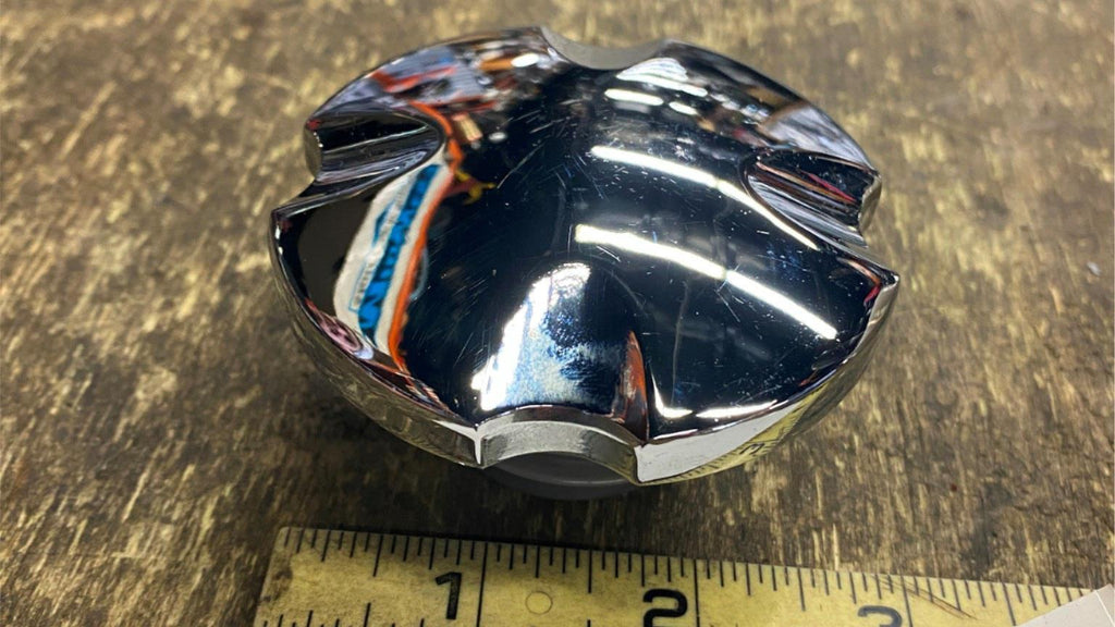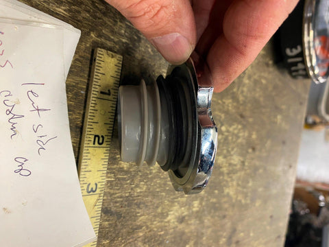 Custom Left Chrome Knurled Gas Cap Harley Softail Chopper Fat Bob Tanks FAtboy Left side thread maybe a landmark???? or cci ??? was in the showcase.