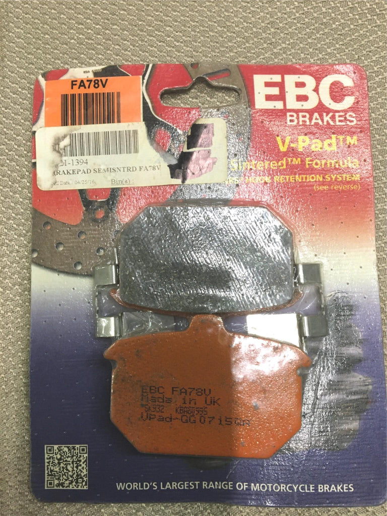 EBC Semi-Sintered V Brake Pads FA78V Semi-sintered construction containing 30% copper by weight built within an organic matrix. Combines the long life of a sintered pad with the great feel of an organic pad. No rotor damage, normally only found using organic brake pads. Excellent for use in larger, heavier applications where long life may be an issue.