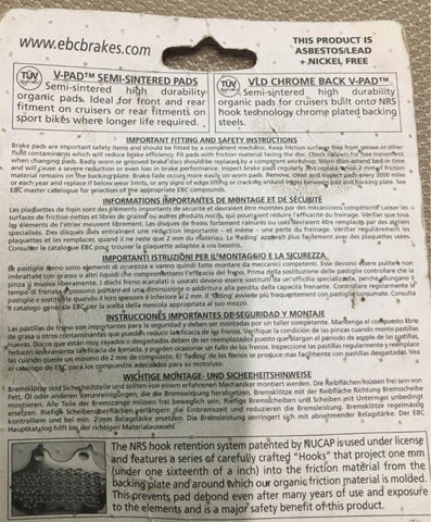EBC Brakes V-Pad Semi-Sintered Built w/NUCAP NRS Hook Retention System P#FA78V