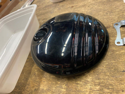 Gas tank Door Cap Harley Touring 2008^ Black Ribbed Push button lock FLH Glide. New, was on display... Kuryakyn tri line. Black with push button lock 6969