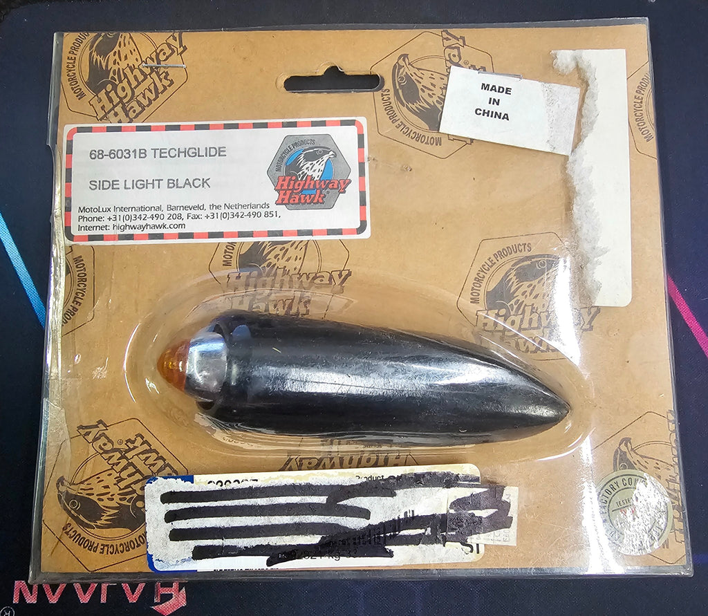 Highway Hawk Techglide Black Side Running Light Amber Lens Harley Chopper Bobber