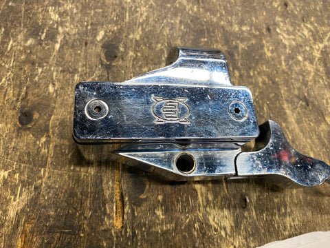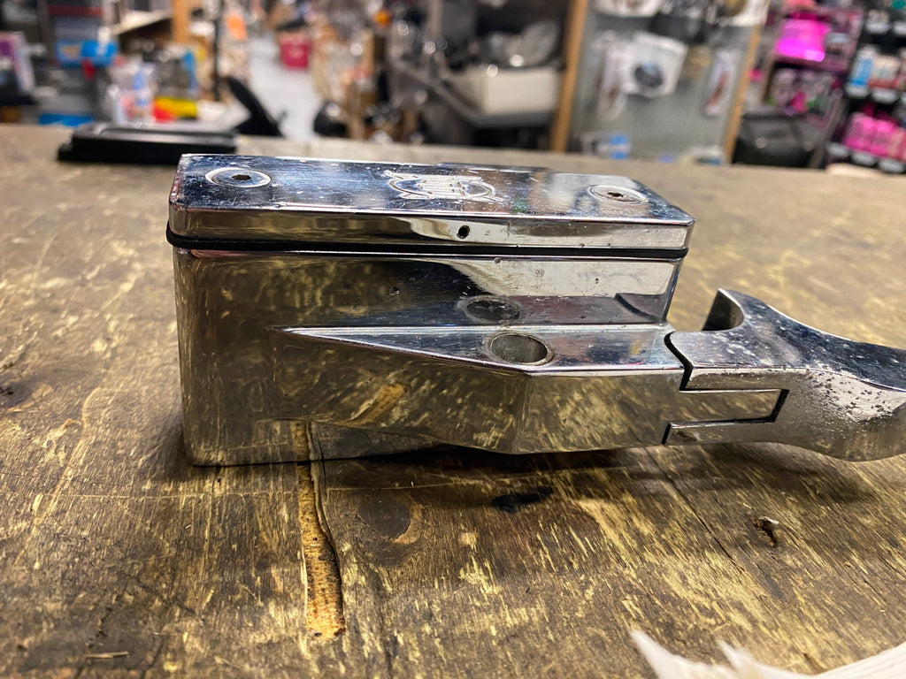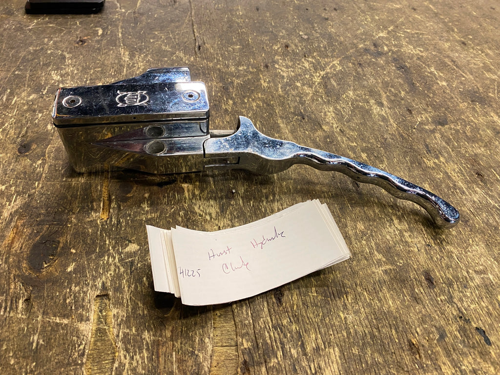 Hurst Hydraulic Clutch Master Cylinder Harley Softail Custom Chopper Handlebar control    still squeezes, may need rebuilt      pitted, up, would look great powdercoated black or stripped & polished   pretty sure its a hurst, guessing some chopper company logo on cap