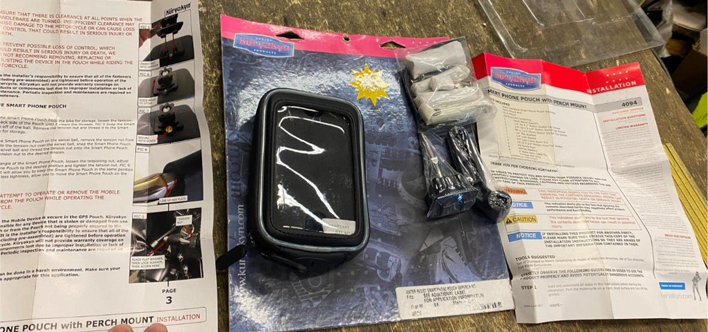 Kuryakyn 4094 Water Resistant Smartphone Pouch Perch Mount Harley Touring Heritage
