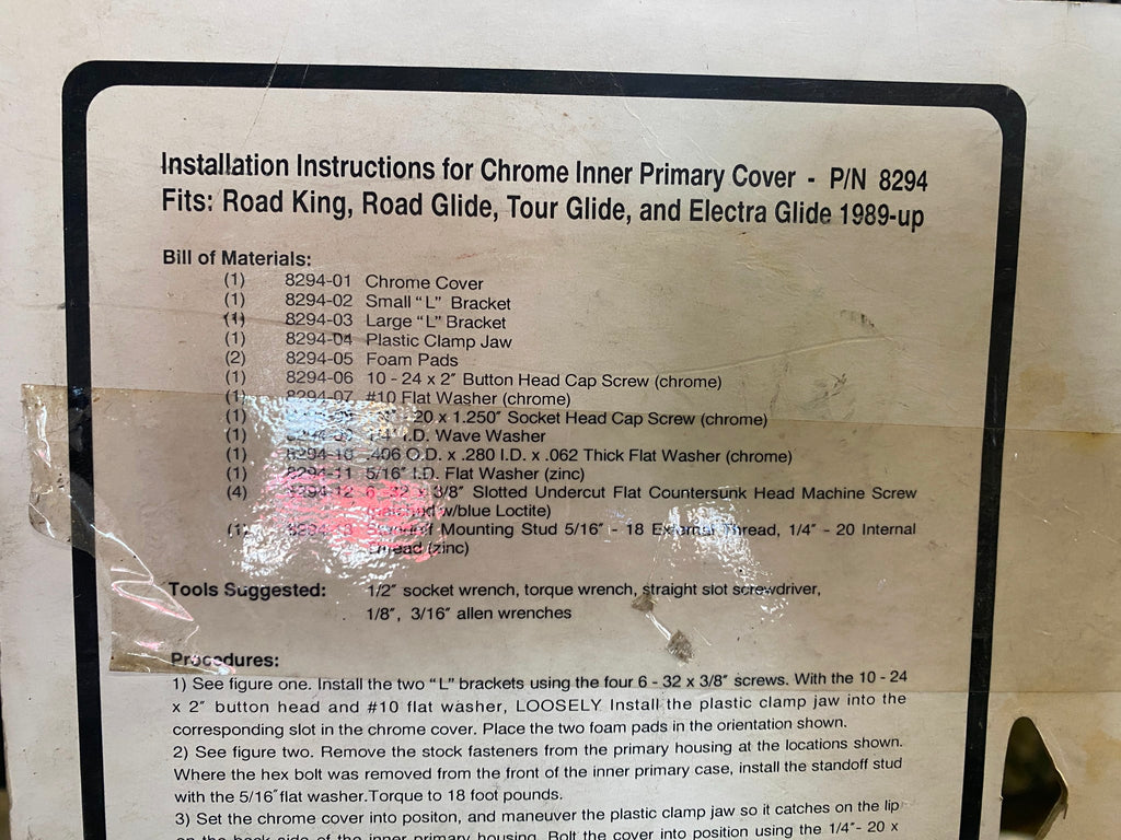Kuryakyn 8294 Inner Primary Cover 90-06 Touring Harley FLH Ultra classic Black little package wear on black may buff out easily no hdwr