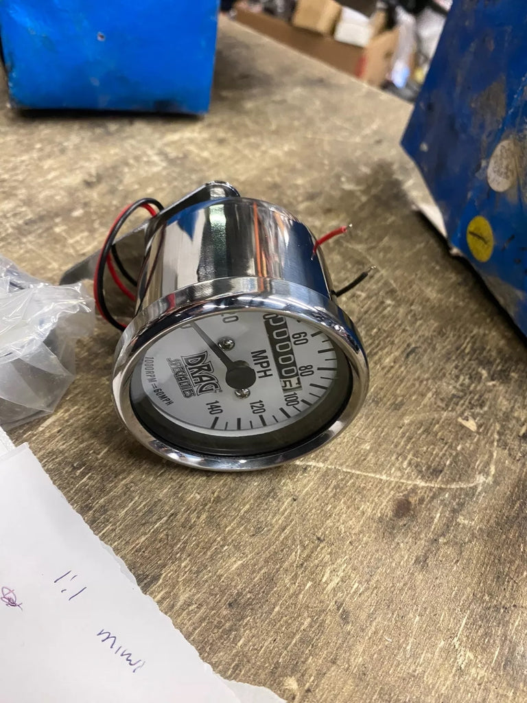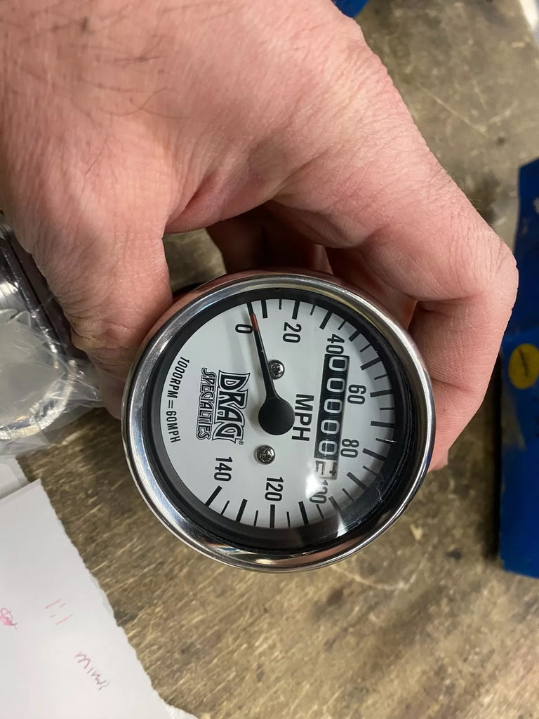 New Mini Speedometer Harley 1:1 Drag 2.4" White Face Chopper Shovelhead Sportster.
