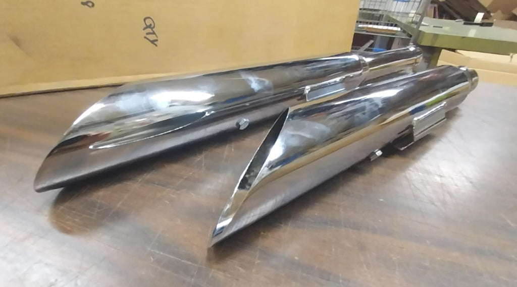 New Cycle Shack Chrome Slip On Mufflers 2000^ FatBoy Deuce Softail Heritage FLST USA Fit 2000 up to ?