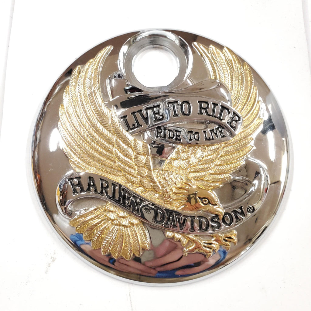OEM 1989-1991 Live To Ride Gas cap Door cover Harley FLH Ultra Classic Gold Chrome.