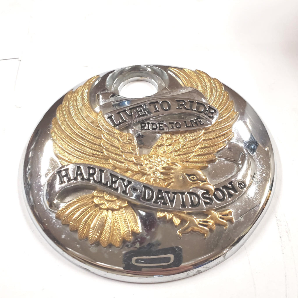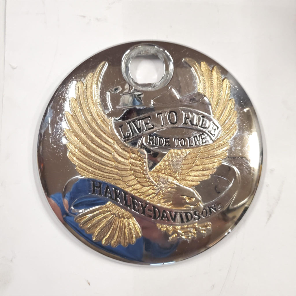 OEM 1992-2007 Live To Ride Gas cap Door cover Harley FLH Ultra Classic Gold Chrome.