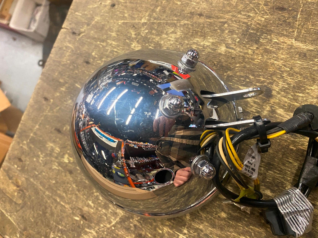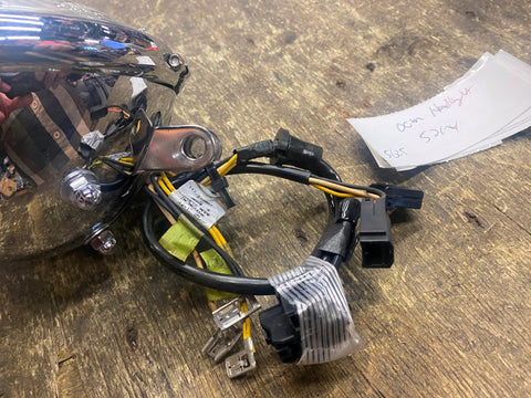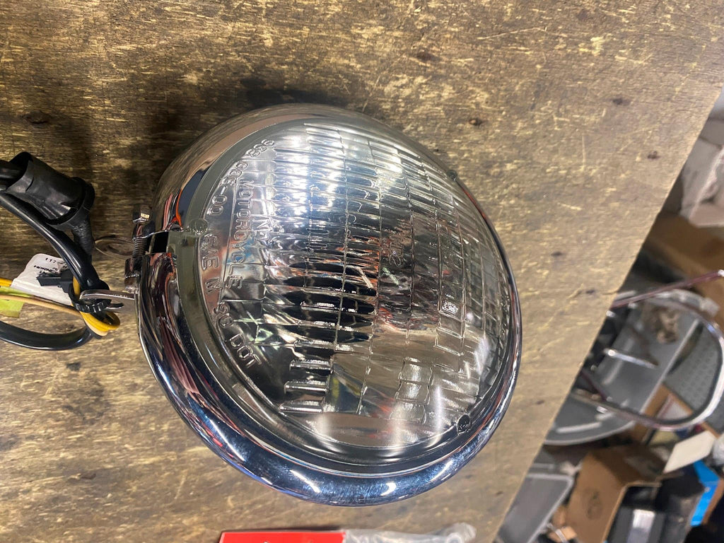 OEM 5 3/4" Bottom Mount Headlight Chrome Harley Softail Wide Glide W Bulb Wiring