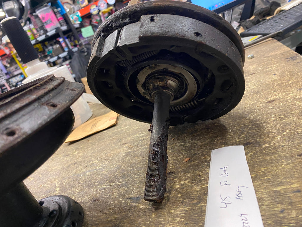 OEM Brake Plate Assy Drum Harley 45" Flathead WL WLA Wheel Hub Orig Factory! orignal shoes and all!!! can lace your rim to it, we have some 16 & 18 rims listed also....