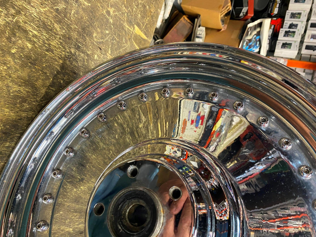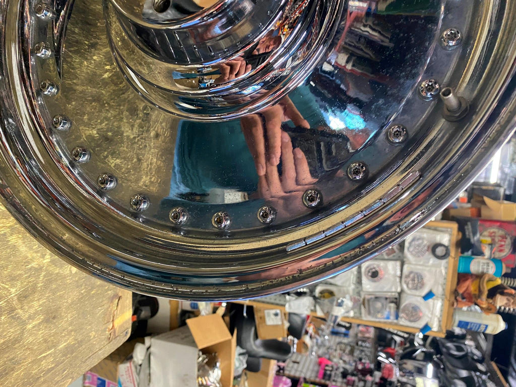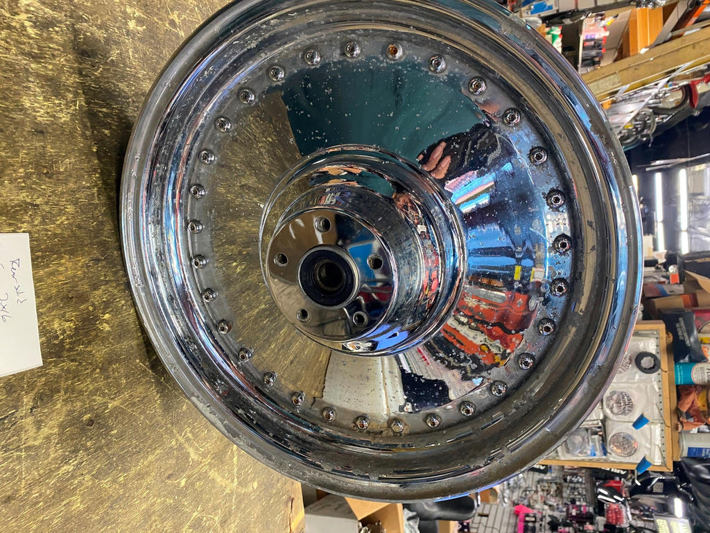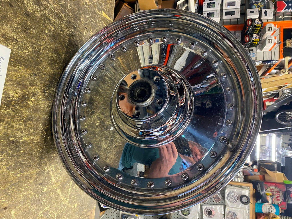 - OEM Solid Rear Disc Wheel 1984-99 FXR Softail Dyna Custom Chopper Rivet believe Centerline made them for harley, chrome is bad would be a great wheel to do in black or strip chrome & polish these were an old accessory wheel, came on the disc glide & the wille g wide glide & the early softail custom also I believe. 3x16