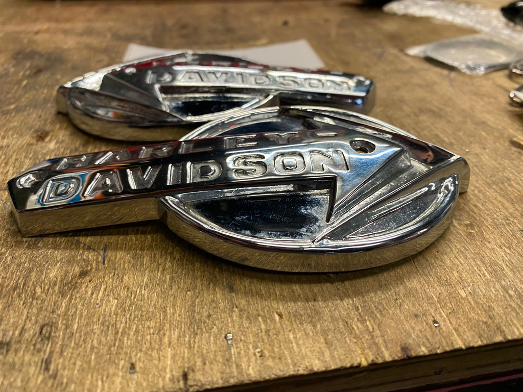 Original Gas Tank Emblems 1959-1960 Panhead XLH Sportster Factory Rechrome VTG