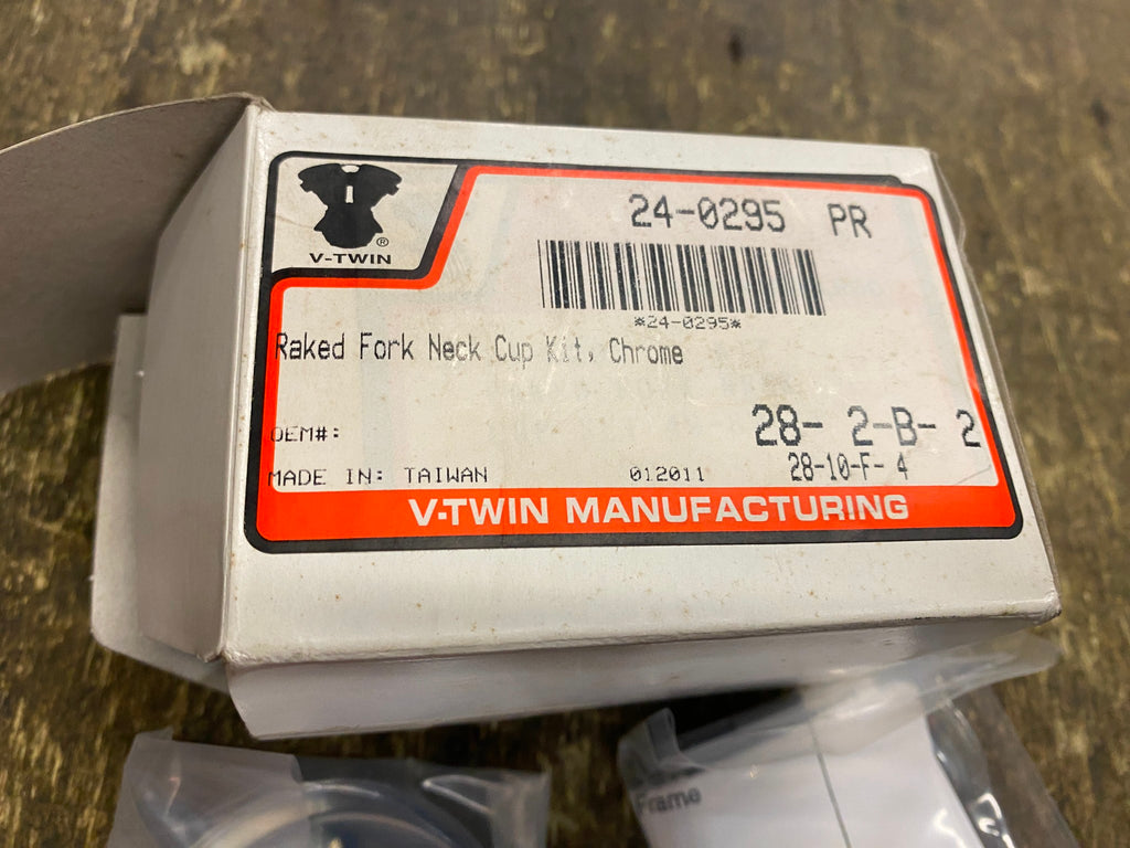 Raked Fork Neck Cup Kit Chrome Shovelhead Softail Chopper 3 Degree Bearings Big Twin