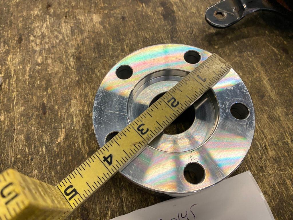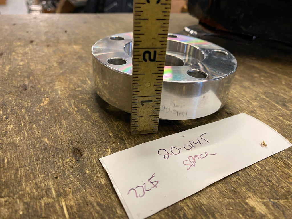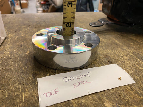 This spacer is ideal to get belt pulleys and chain sprockets in line. Spacer can be machined down to the next size under without having to worry about the spigot alignment when you machine the face of the spacer down to desired thickness. Spacers are drilled for use with 7/16" bolts and designed to be used with 2000-UP type wheel hubs. 2.25 inner diameter