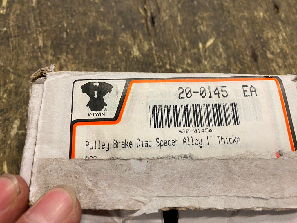 Rear Belt Pulley Brake Rotor Disc Spacer 1" Wheel Adapter Harley Softail FXR Dyna etc Alloy 1" thick rear pulley rotor spacer has 5 holes and 7/16" bolt holes.