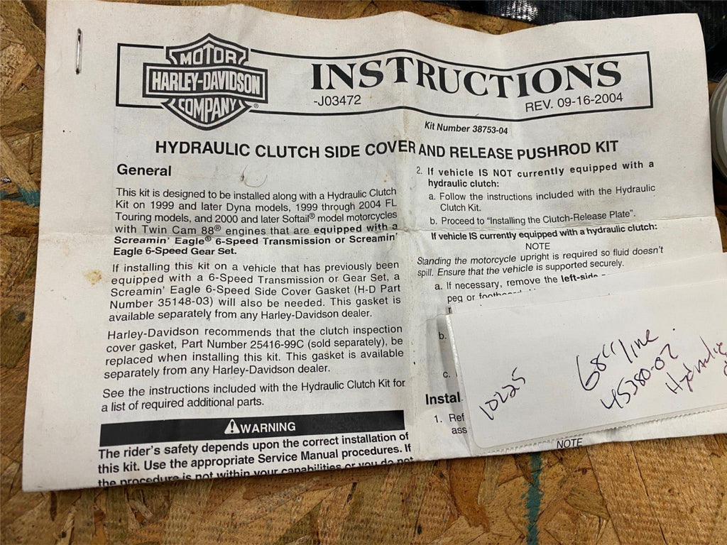 Screamin Eagle Hydraulic Clutch Kit Master Trans Cover Touring Softail Dyna 99^ added the master cylinder & the ss hydraulic line to kit comes with gasket also! info below from harley believe it fits up to 2013 on most models....... changed the master cylinder in 2014 38753-04