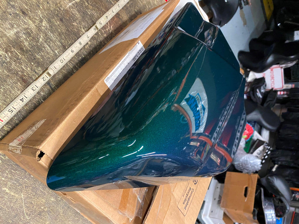 SIDE COVER PANEL LEFT SNAKE VENOM GREEN HARLEY FLH GLIDE STREET ROAD KING 2021   new in box   harley part # 57200083ETF