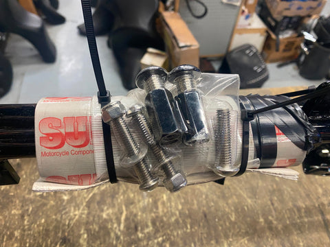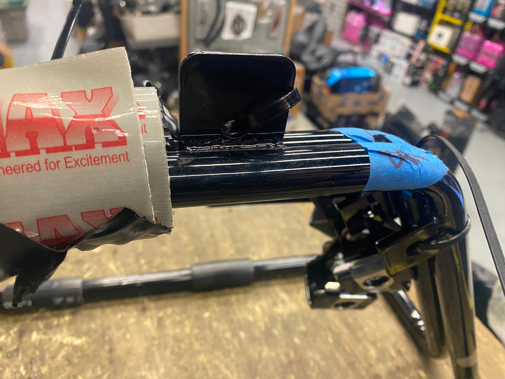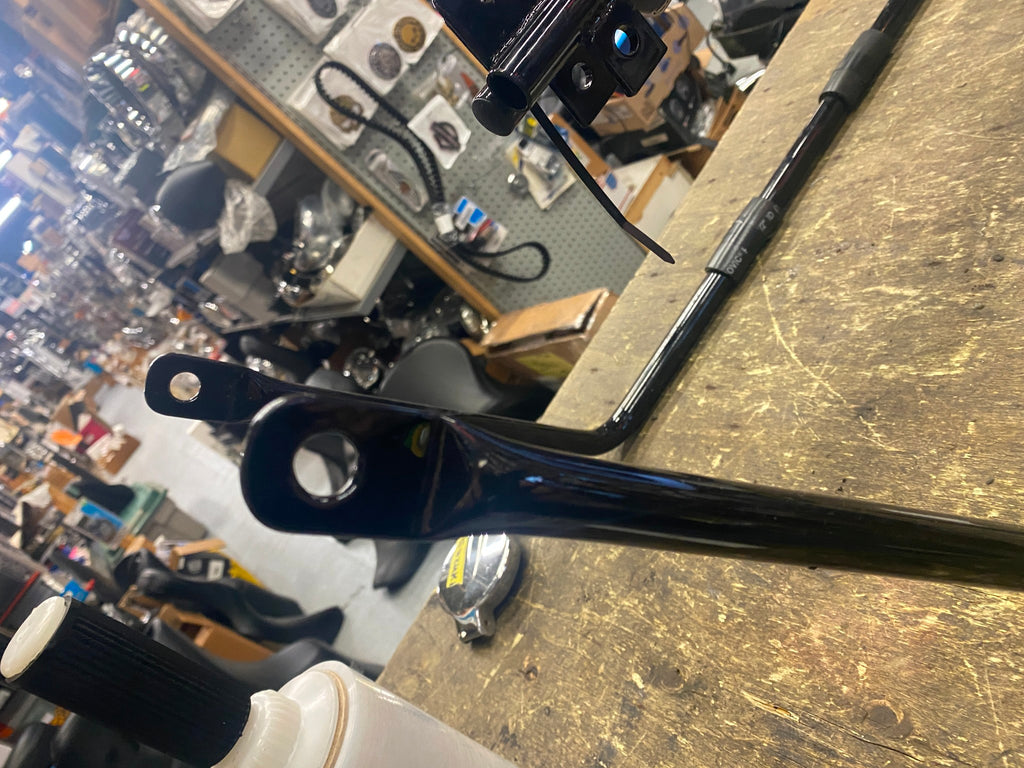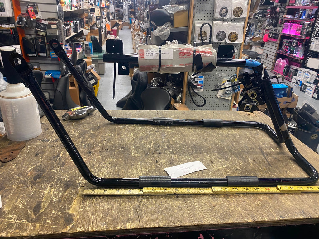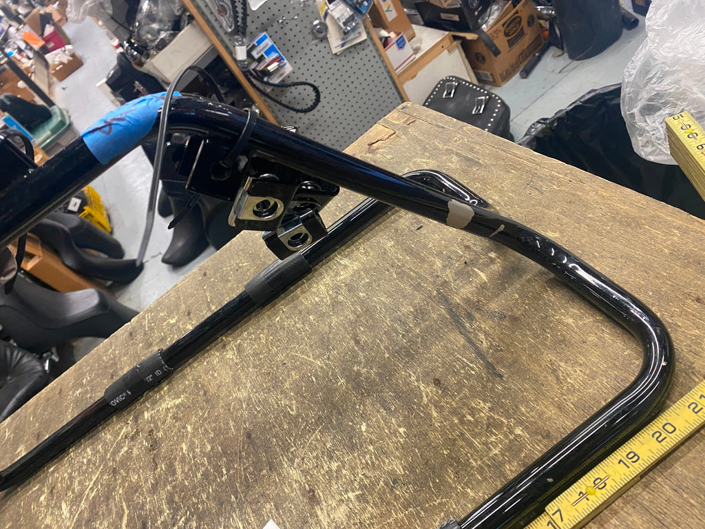 Distance from fender rail bolts to bottom of the bag is 13.5″ which is needed for clearance. The brackets mount just to the rear of the shocks for passenger comfort. (If the bags were more forward the passengers legs would hit the bags trying to find the pegs.) Our mounting system will work with the Switchback model.