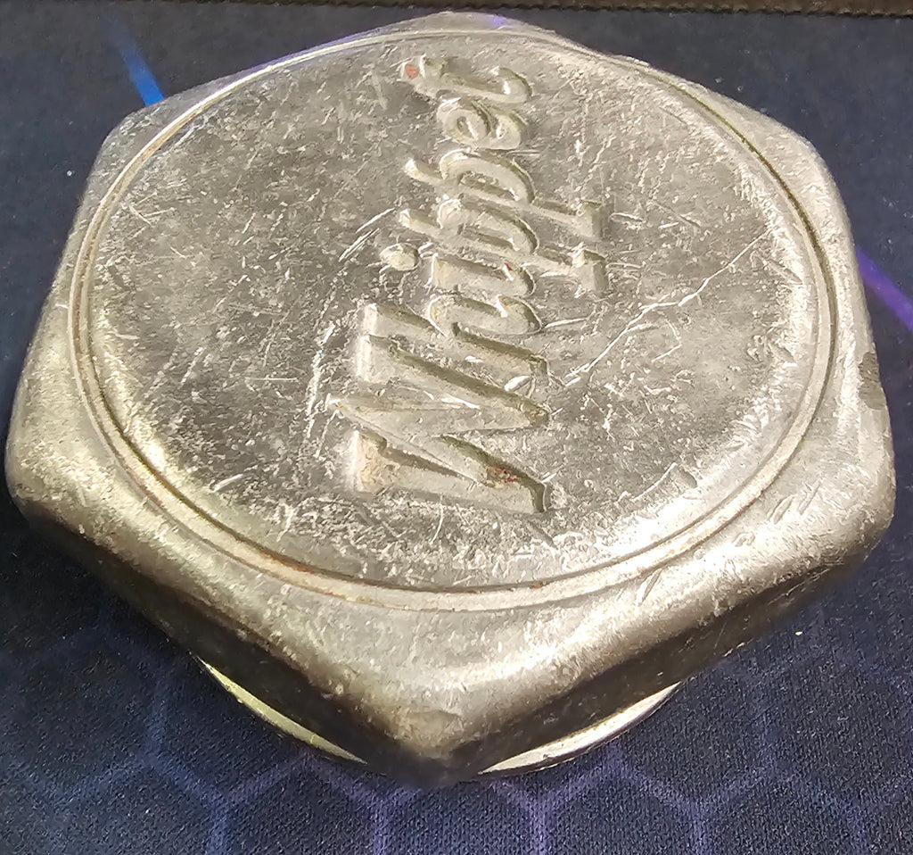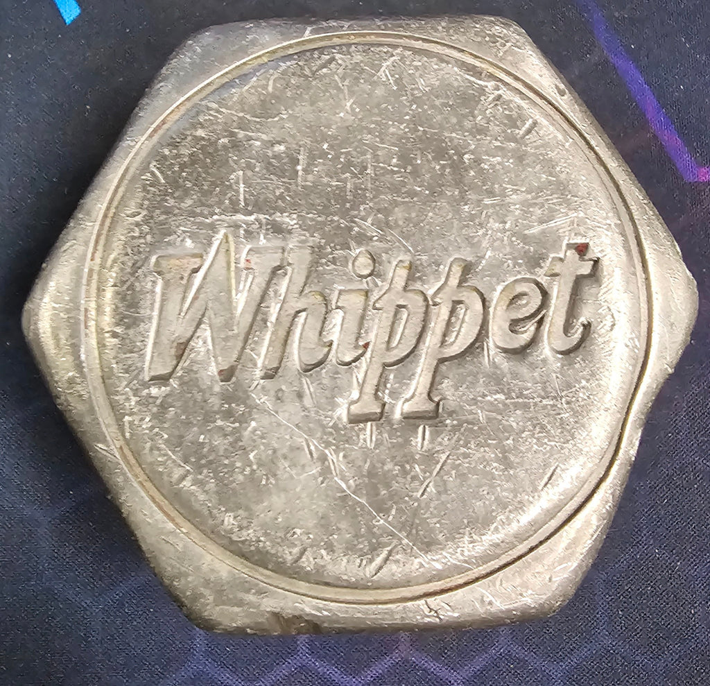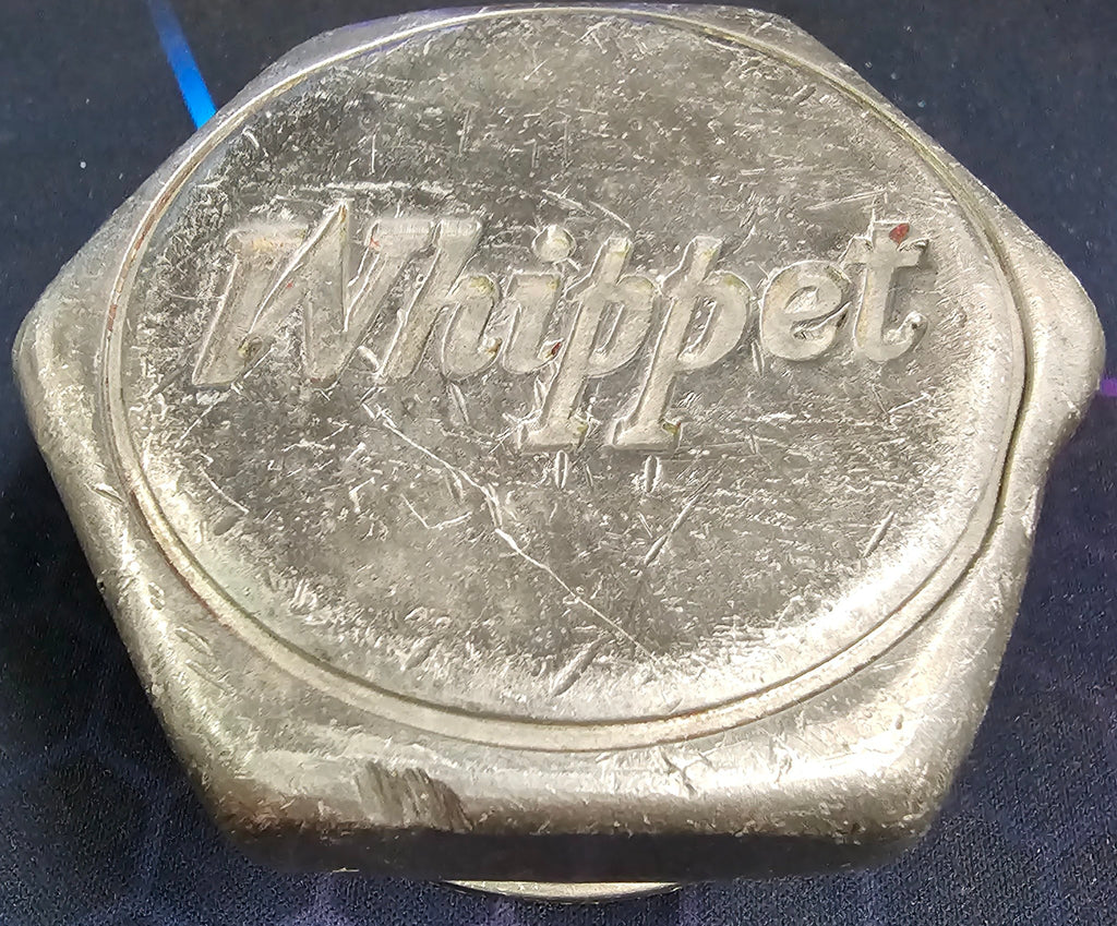 This vintage center cap is a great addition to any Whippet enthusiast's collection. Made of durable aluminum with a matte finish, it features the iconic Whippet emblem and a threaded design for easy installation. Measuring 2.625 inches in inside diameter, this cap is designed to fit perfectly on your Whippet's wheels.