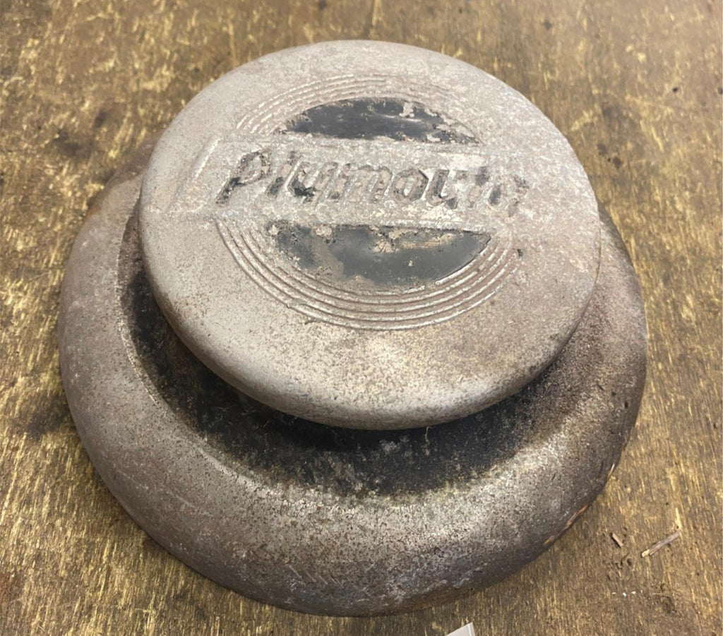 Vtg 1930's Plymouth Aluminum Hubcap Deluxe Roadster coupe Panel truck