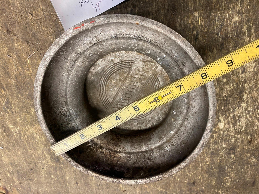 Vtg 1930's Plymouth Aluminum Hubcap Deluxe Roadster coupe Panel truck   not sure what this one came off of  if you know let us know   looks like it would clean up