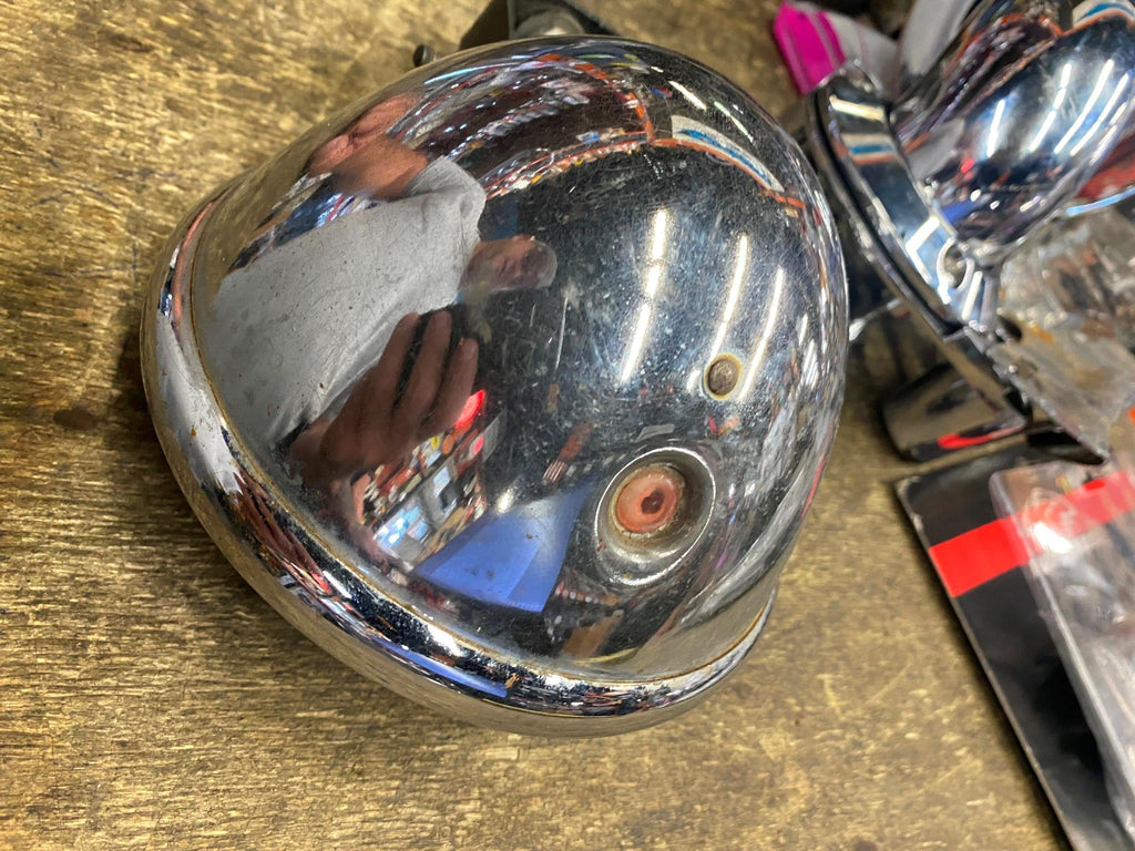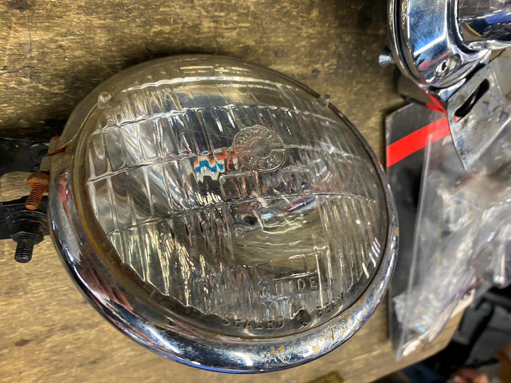 Vtg 5 3/4 Bottom Mount Headlight Harley Chopper 5 3/4 Old Skool Shovelhead Ironhead etc didnt test bulb..... came with a basket shovelhead chopper