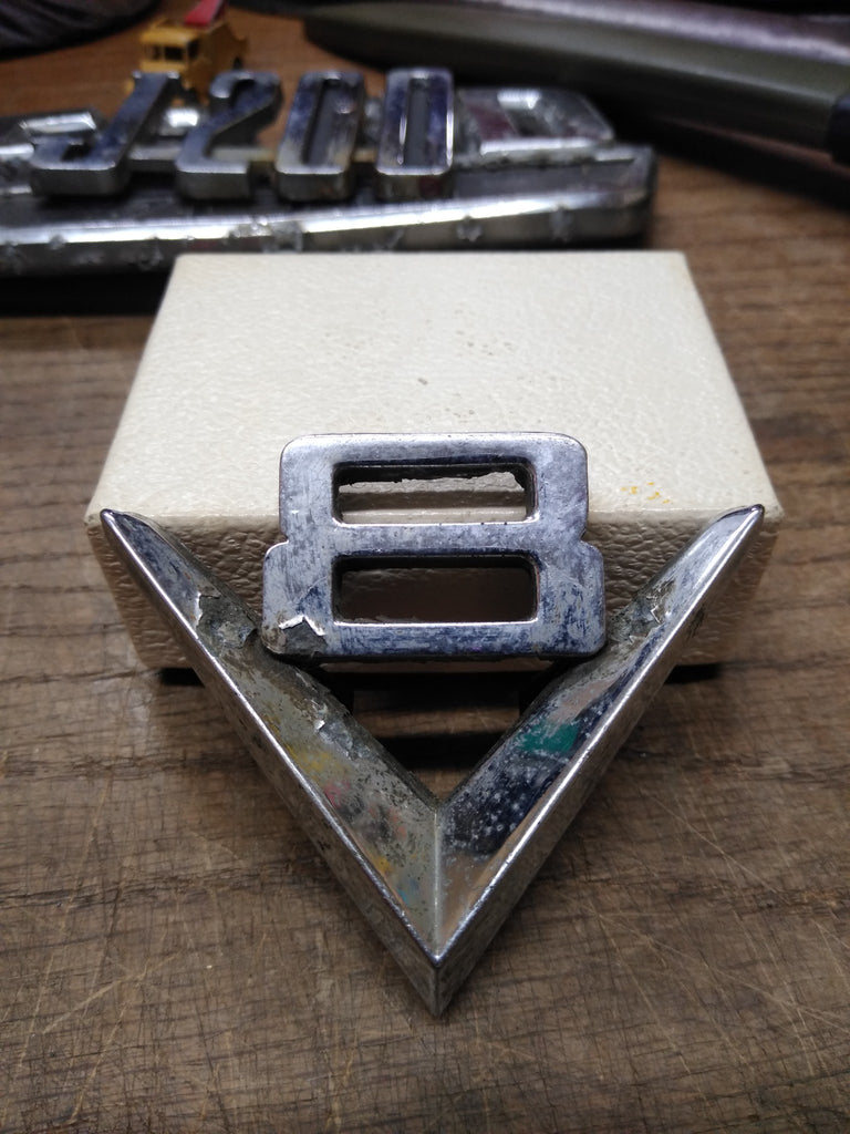 ***PLEASE LOOK AT ALL THE PICTURES AND ASK QUESTIONS BEFORE BUYING*** This is a Vintage Ford V8 Circa 1955 Chrome Fender Emblem Badge Trim Automobile Truck Parts!! ****** The pictures are a substantial part of the description so please examine all the photos and contact me if you have any questions. We will be happy to save you shipping costs by picking this up at our shop. Thanks for looking.  112023- RK-10