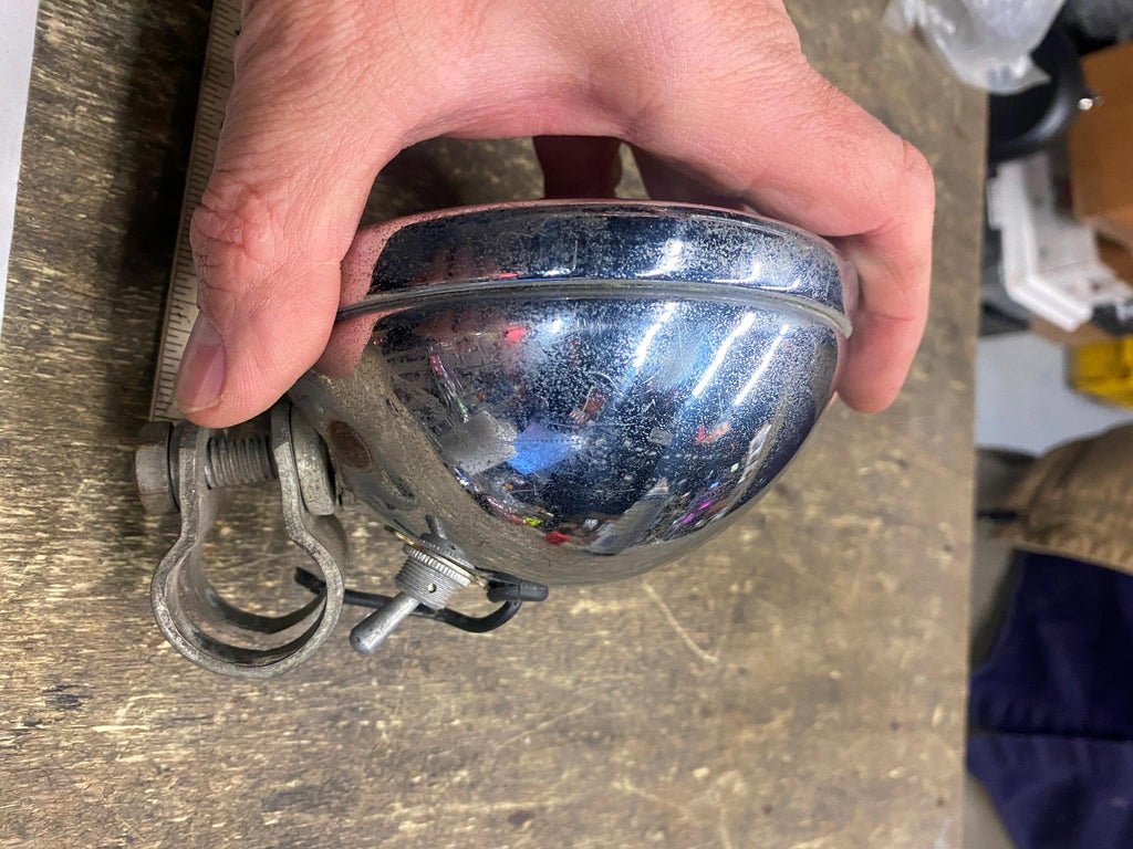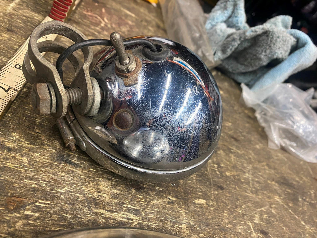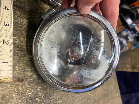 Vtg spotlights Acc Harley Knucklehead Panhead Beck Buco firefly Flathead UL WL 1940's acc lights for an old knucklehead or panhead one lens is cracked