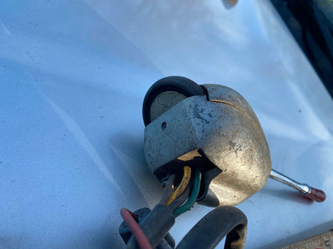 Vtg Turn Signal Column Switch Willys Jeep Truck 1940's Mack Diamond T Hot Rod coolest one Ive seen! Red handle red, red lens (cracked) wheel to rub on steering column (like an auto shutoff!!!) Came from an old 1940's tow truck! never had the right vehicle to put it on