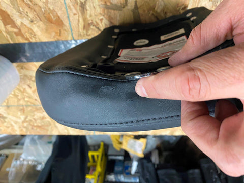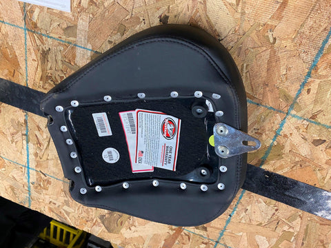 Cut low with a wide 14" driver seat that features extra width in the hip area so you can ride low, look cool and still be comfortable at the end of the day's ride. Features include detailed stitch work in the highly durable synthetic glove-leather cover