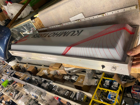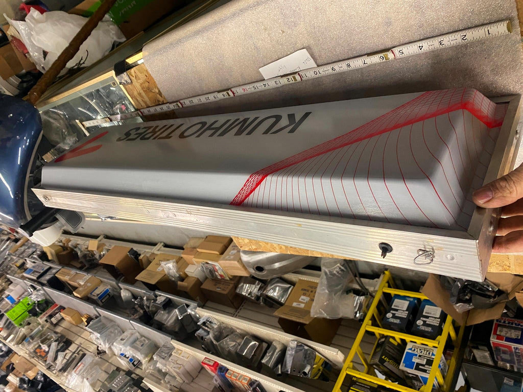 Kumho Tires Large Gas Oil Advertising Sign Light 37" Man Cave Auto Dealer Petroliana Great piece to hand in the man cave garage etc! came with cord cut & no bulbs didnt mess with it... clean sign!