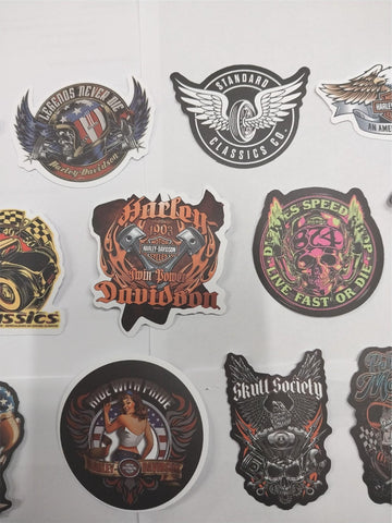 50 Assorted Harley Motorcycle Stickers Chopper Ladies Eagles Ride Skulls Garage