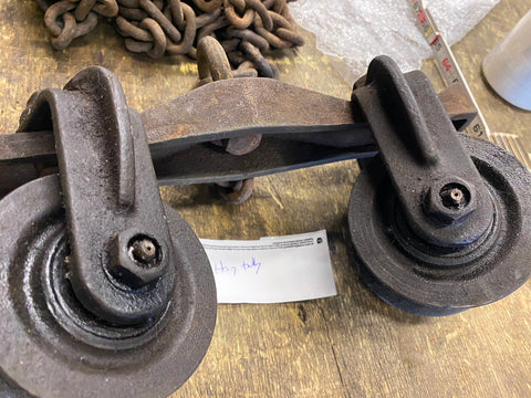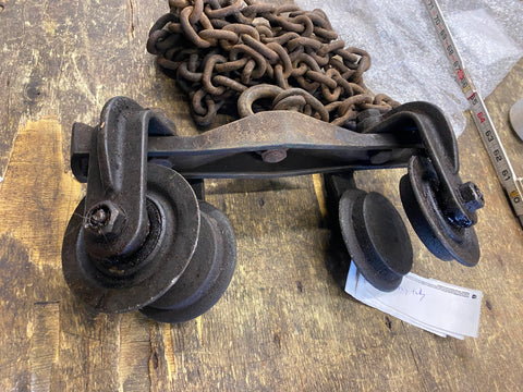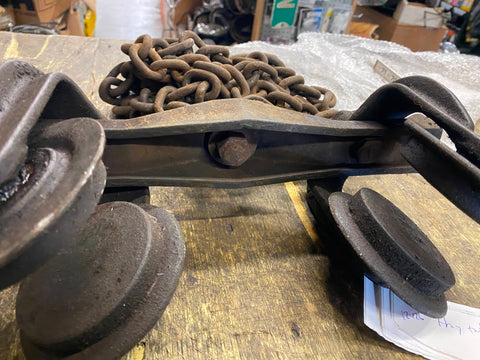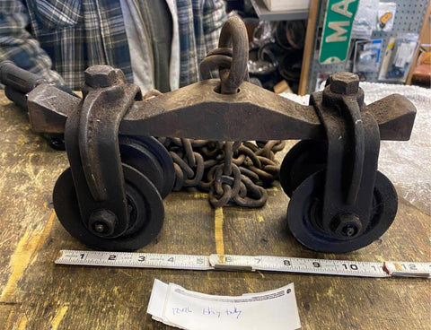 Vtg Hay Trolley Antique Cast Iron Farm Industrial Carrier Ornate Machinery tool! if you dont want the chain we can reduce shipping.