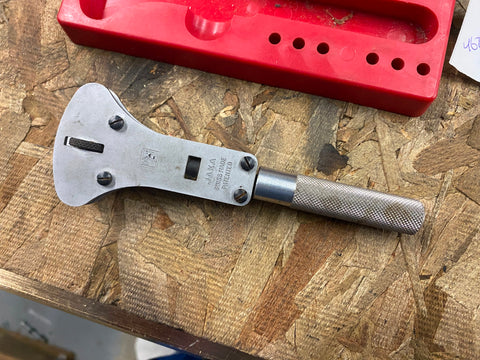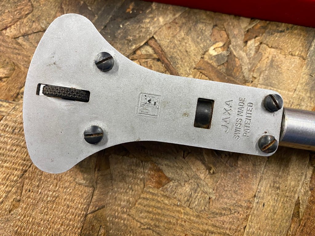 Jaxa watch case opener, a specialized tool used to remove the screw-off back covers of watches, particularly waterproof models.