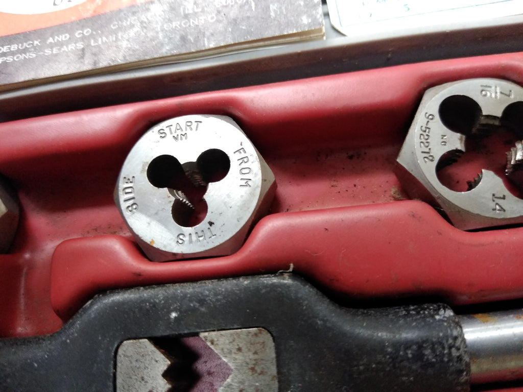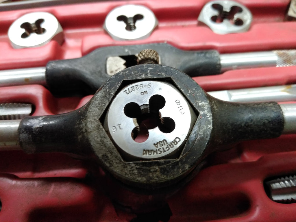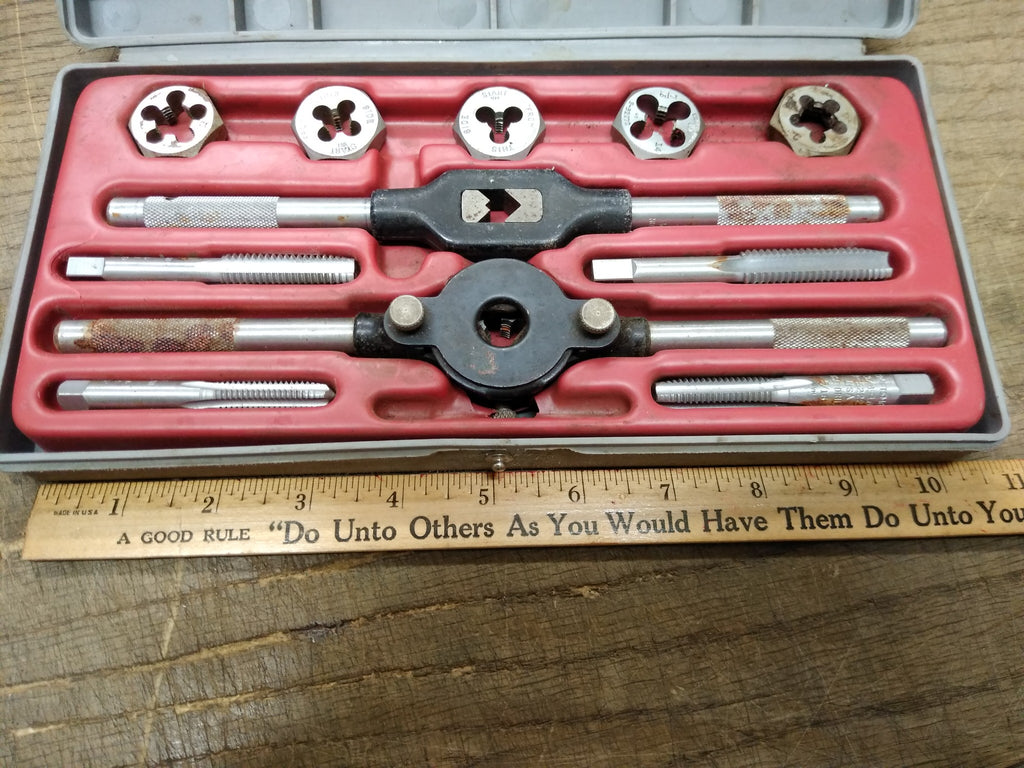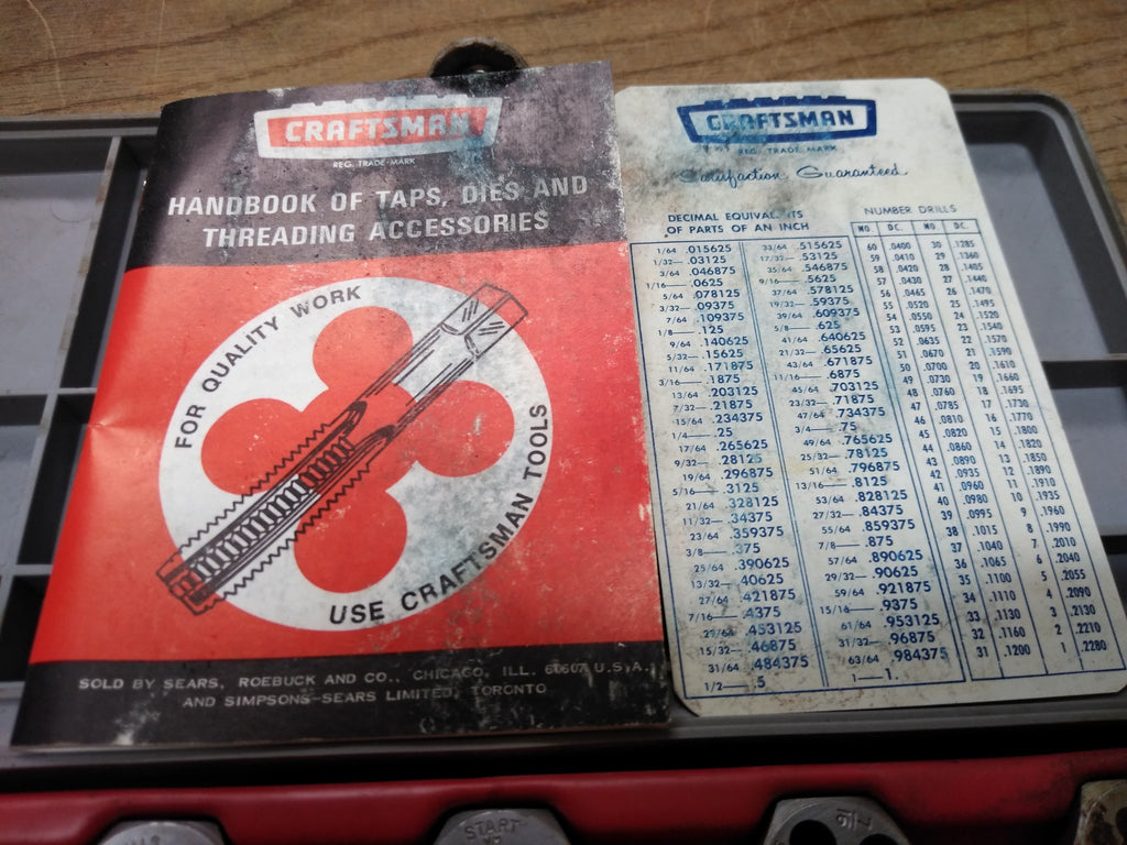 ***PLEASE LOOK AT ALL THE PICTURES AND ASK QUESTIONS BEFORE BUYING*** This is a Vintage Sears Craftsman 11 Piece Tap and Die Set Made in USA Original Box *** The pictures are a substantial part of the description so please examine all the photos and contact me if you have any questions. We will be happy to save you shipping costs by picking this up at our shop. Thank You 062725- RK-03