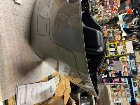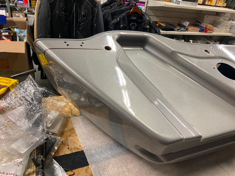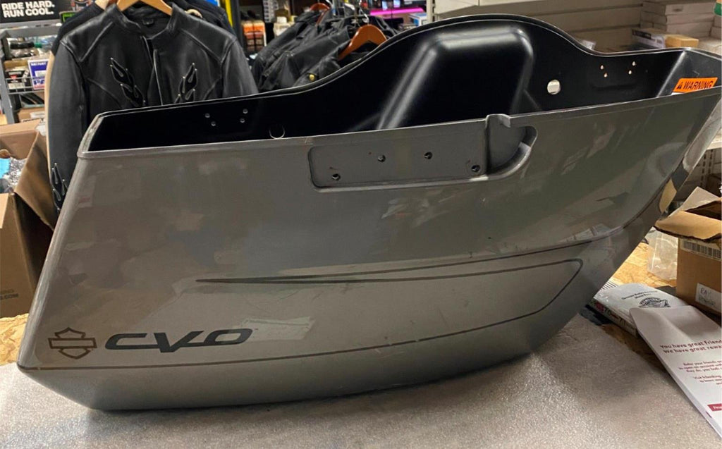 Right CVO Saddlebag Dark Platinum Silver Lower Harley Touring Street Glide 2024^ not certain of color name some marks on bag maybe good for a painter customer said its off a 2023 street glide but think hes wrong came out with this style in 2024???? maybe earlier on cvo?