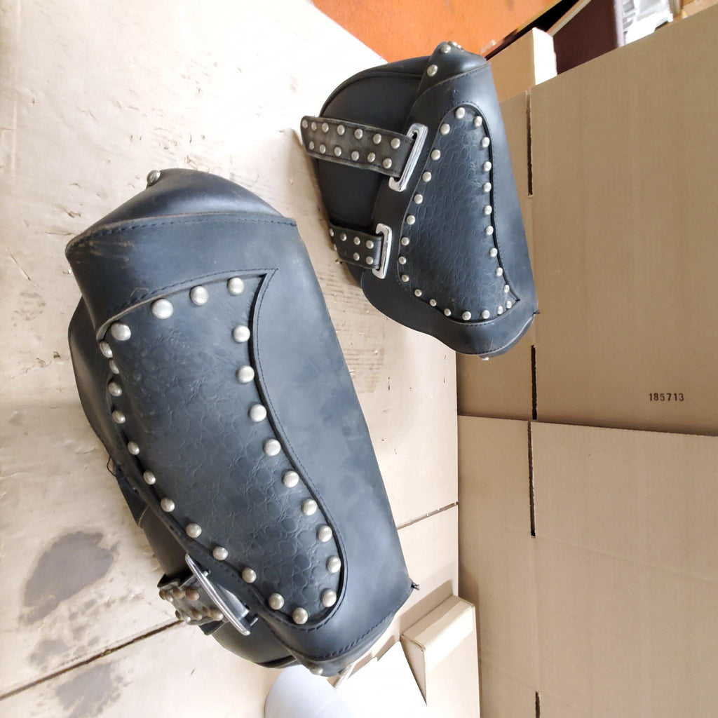 1997 Harley Black leather Studded Velcro Belt Buckle Saddlebags Nostalgia OEM.