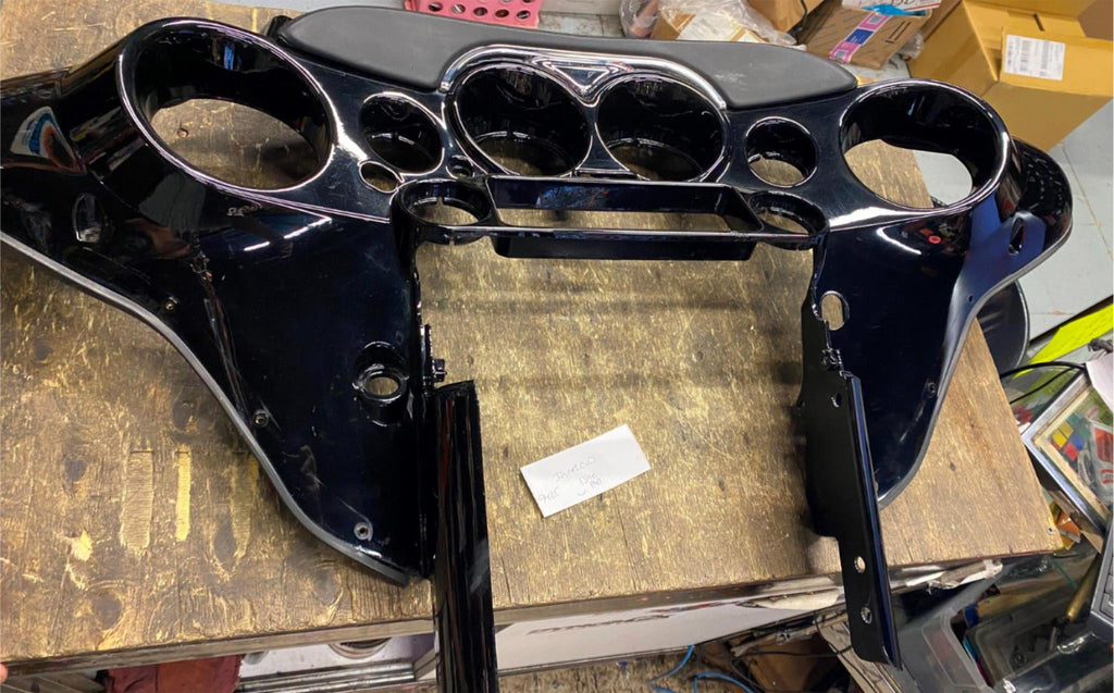 OEM CVO Inner Fairing Vivid Black Harley touring 1996-2013 FLH Street Glide Ultra nice shape with pad may have a touch of metalflake in it small chip under radio hole could use a good buff, just wiped off for pics...