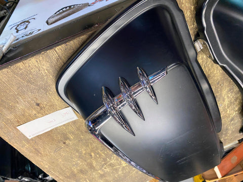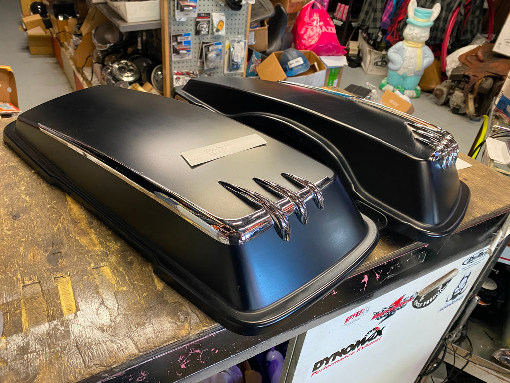 Saddlebag Lids Harley Touring FLH Street Road Glide Ultra Classic 93-13 Trim chrome denim black with fancy linings