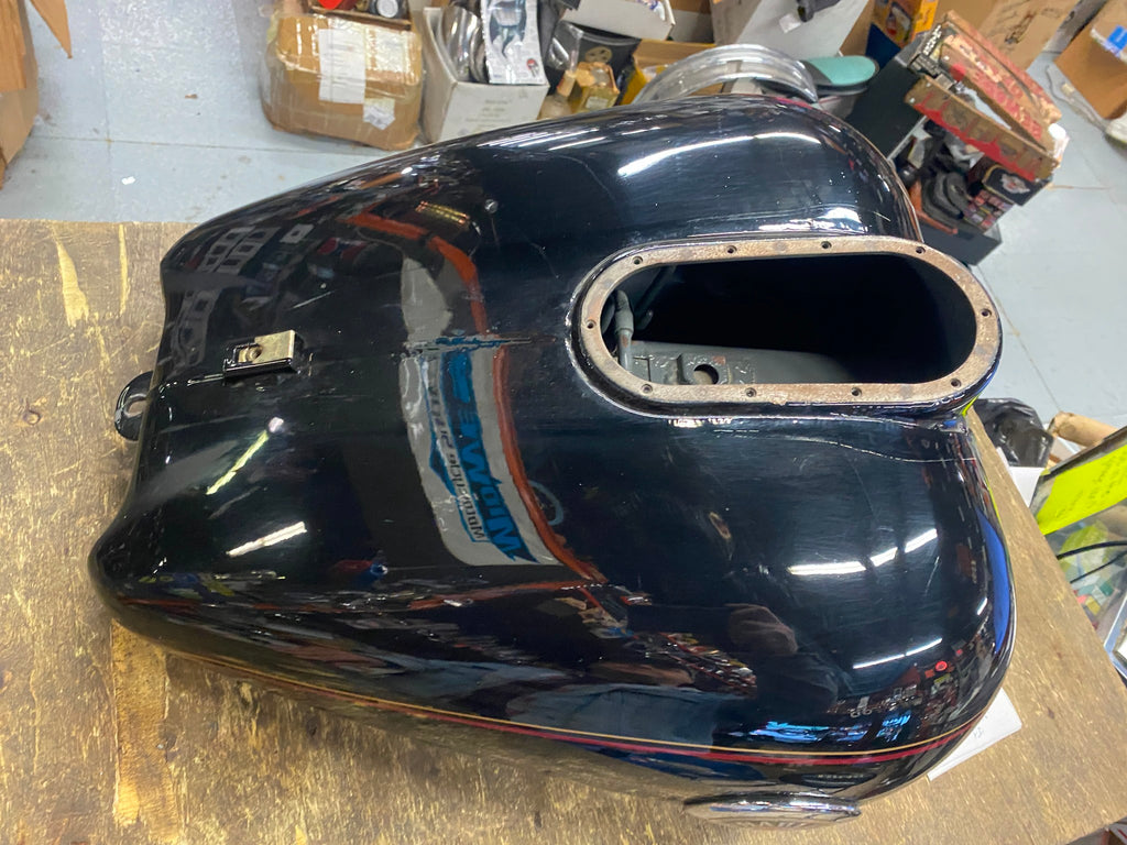 Vivid Black Gas Fuel TAnk Harley Touring FI 1996-2001? Ultra classic Glide FLH NOT SURE OF ALL YEARS have to look at fi pump mounts on your app to make sure it will work.... paints pretty nice, good emblems could use a good buff job.